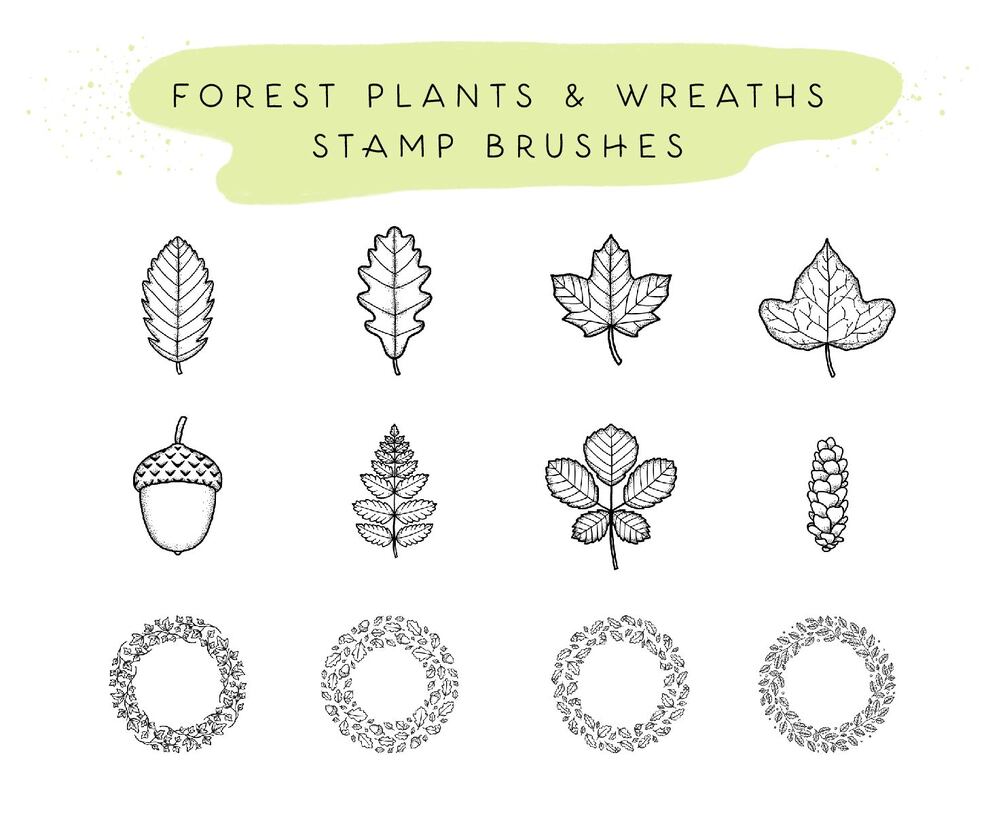 - 29 Procreate stamp brushes (animals, plants, and wreaths)
